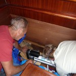 We re-checked the cabling and tubing of the newly installed watermaker and found a broken O-ring, replaced it and everything now seems 100% right. We might give it a try next time, we’re out in clear waters. We also dismounted the windsteering and put a fitting in place that somehow slipped out of the pipe. That probably was the first service in 30 years. Go Windpilot, go !!!