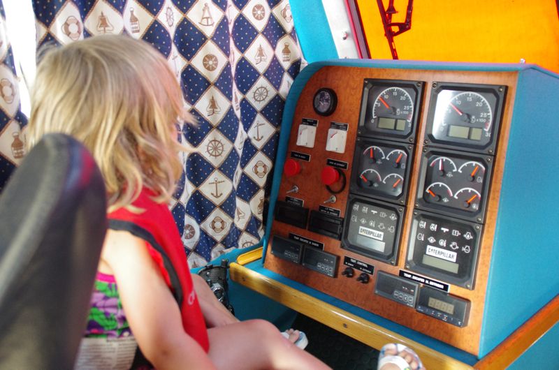 Then ther was that bright orange colored boat: The rescue vessel ‘Salvamar Nunki’. Thanks to Gui’s efforts we managed to get a guided tour by the Captain of the vessel. Of course the kids wanted to know EVERYTHING and – were shown everything. From the winches to the crew’s quarters, the engine room and of course the cockpit with all it’s electronic gadgets. Quite fascinating ! A few details about the ship: it’s maximum speed is 36 knots and it’s not driven by propellers but by jet propulsion (like a gigantic jet-ski). The draft of this 21m ship is only 80cm – so it can go quite close to the beach. Nice !