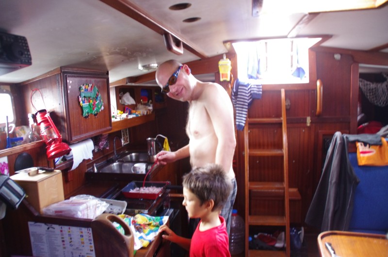 Back at our dinghy we met the crew of the SY Ninita. We last saw each other in Mindelo, Cabo Verde. So we invited our friends on bord and had a few cold drinks and a lot to talk about.