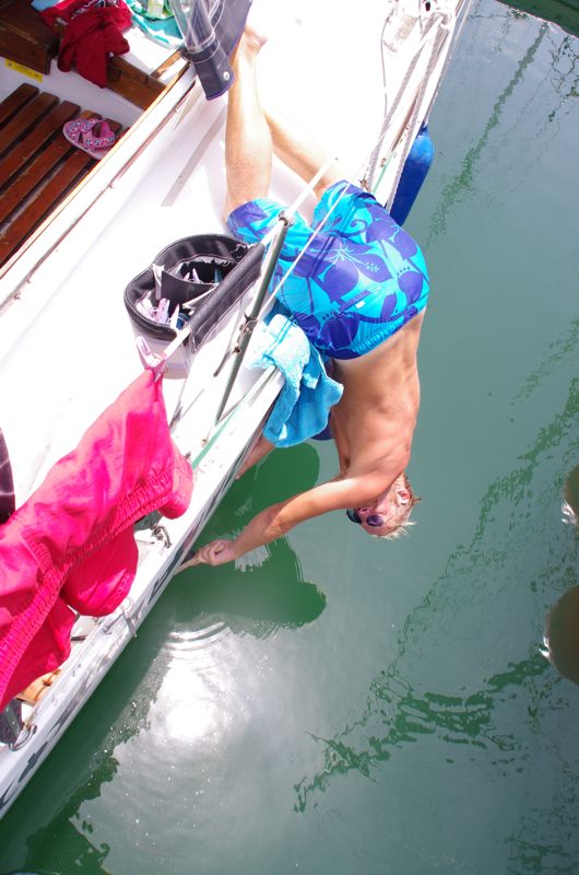 Yesterday the SY Mares arrived and Bruno and Viola were extremely contented to see Laura again. The three spent the whole evening chasing crabs on the jetties and swimming and diving in the marina pool until 23h in the night. Right now we’re doing school and afterwards we’ll visit Laura to probably go to the pool again. Hehehe.