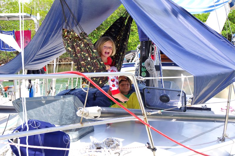 The best linehandlers of the world – our friends from the Kira have decided to do the passage a third time. Way ahead of time, they arrive three days early to enjoy luxury life in the marina. They commute in between pool and bar and in the early morning hours they swing themselves into the hammock on the foredeck. Hehehe.