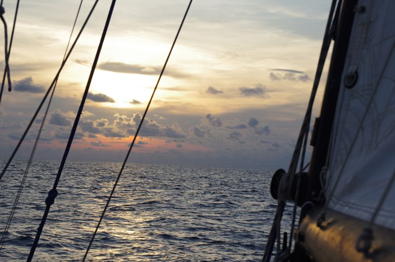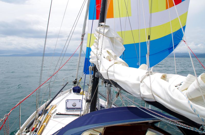 After spending another night adrift just outside of the bay of Golfito, the wind picked up in the morning. We sailed towards our destination slowly but steadily. While entering the golf, the wind shifted to southwest and we got the Blister up to increase speed. The tide was still with us and kept pushing with 1.5 knots from behind – but soon it would turn around and we would sail backward.