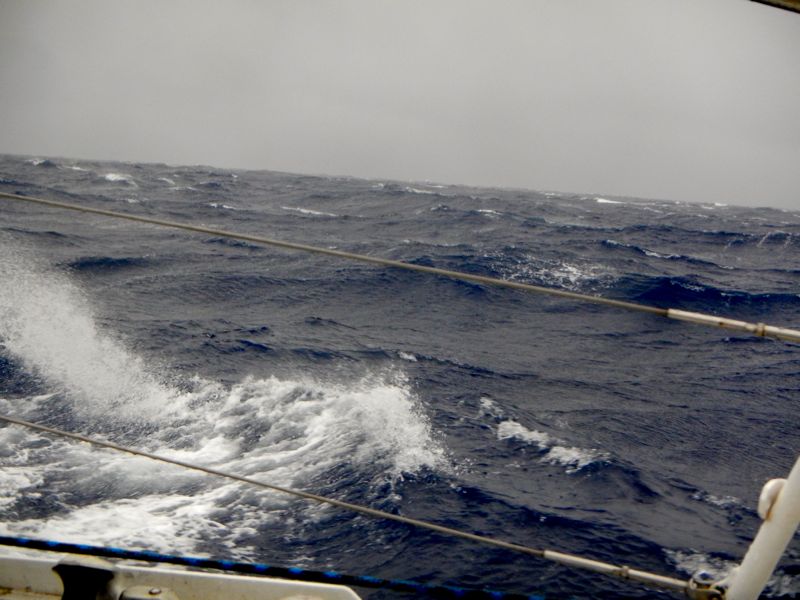 Slightly further south it was even worse. We heard of yachts that encountered more than 50 knots of wind just 50 miles south of our position.