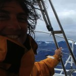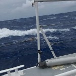 The damage: one genoa sheet was nearly shaved through and again we made lots of water. The most of it in the lazarette but not as much as previously in the living quarters. The sunbrella cover of our Genoa was already slightly damaged from all the flapping during the light wind sailing and the storm did some additional damage. But it’s already down and we gave it to the local sailmaker to re-stitch it. It should be fine again in one or two days. We had to use the autopilot for a few minutes while we put in another reef. Although it usually keeps the course quite well it managed to do a jibe (!!) while we were sailing on the wind. A jibe with 40 knots is not very nice and it tore out the stopper of the track of the main sheet. But that I can also repair easily. The culprit seems to be a faulty connection on the autopilot computer – a common fault, we learned. I’ll look into that during the next days too.