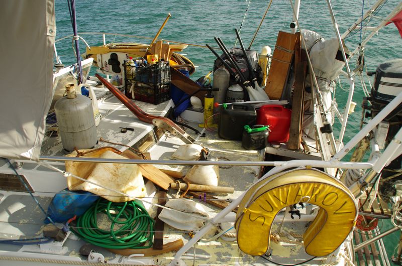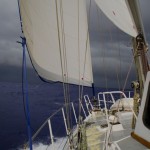 Compared to the other boats that came into harbour during the next days, we did pretty well. Other boats had their sails completely torn, blocks destroyed, hailyards snapped, etc. I don’t like cleaning the boat after an incident like that but if that’s all – I can live with it. And of course we will again improve and try to stop some more leaks that we found on hatches, vents, etc.