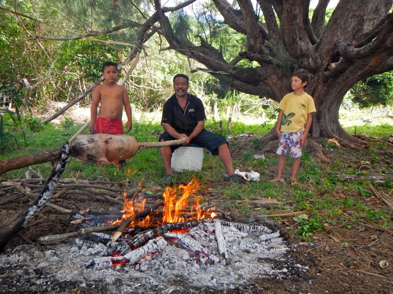Our first stop outside of Neiafu was at the anchorage No.16 on the western side of Vaka’eitu. A very peaceful little island inhabitated by only one family. We arrived there last saturday just in time to participate in a traditional Tongan feast with a pig roasted over open fire and many roots and vegetables baked in an earth oven. Veeery nice !!