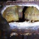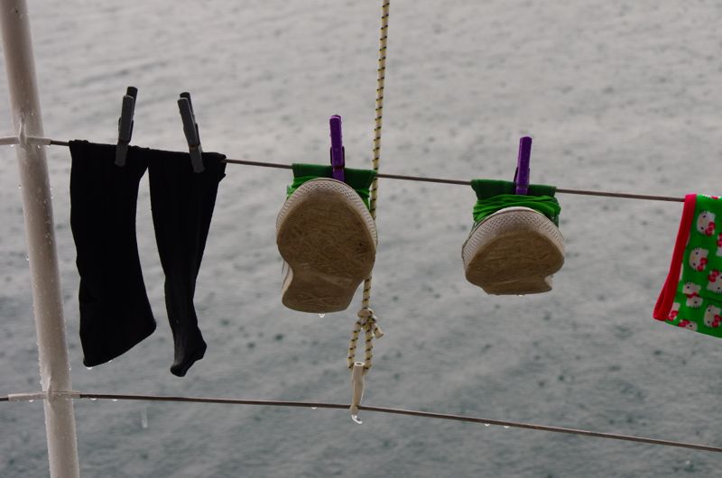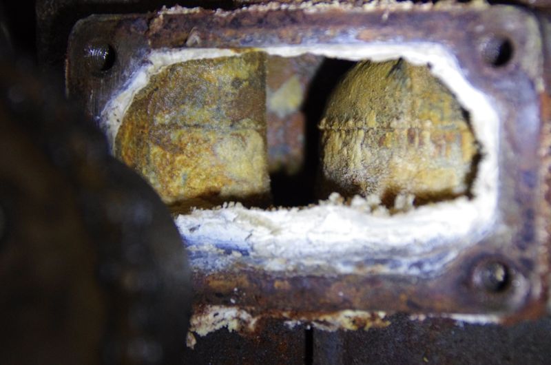 News on the engine front: After flushing the engine approx. ten times with 5% H2SO4, the cylinder head now looks like new. Also the sacrificial anodes are 50% gone. Heh. But the problem remains: when running the engine in idle mode the temperature is fine; when the engine has to move the boat, it will overheat after only three minutes. Ten minutes later we can already see a little steam coming from the exhaust.