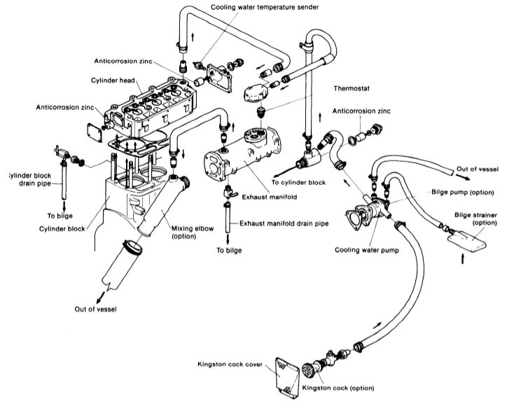 Yesterday I again checked the impeller and replaced it (just in case) but that didn’t do anything. I also cleaned the seawater inlet and filters which means EVERY part of the cooling system now was checked.
