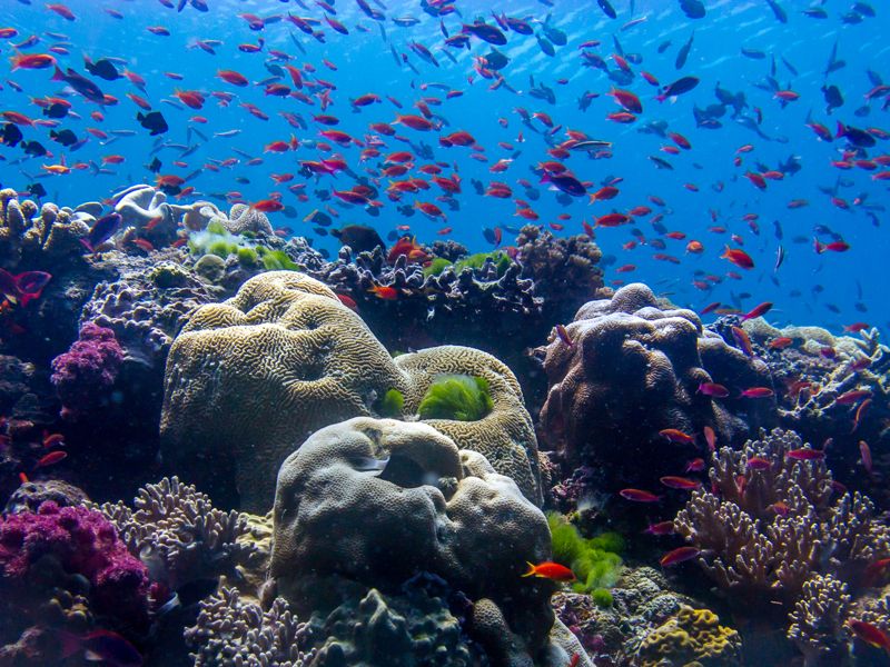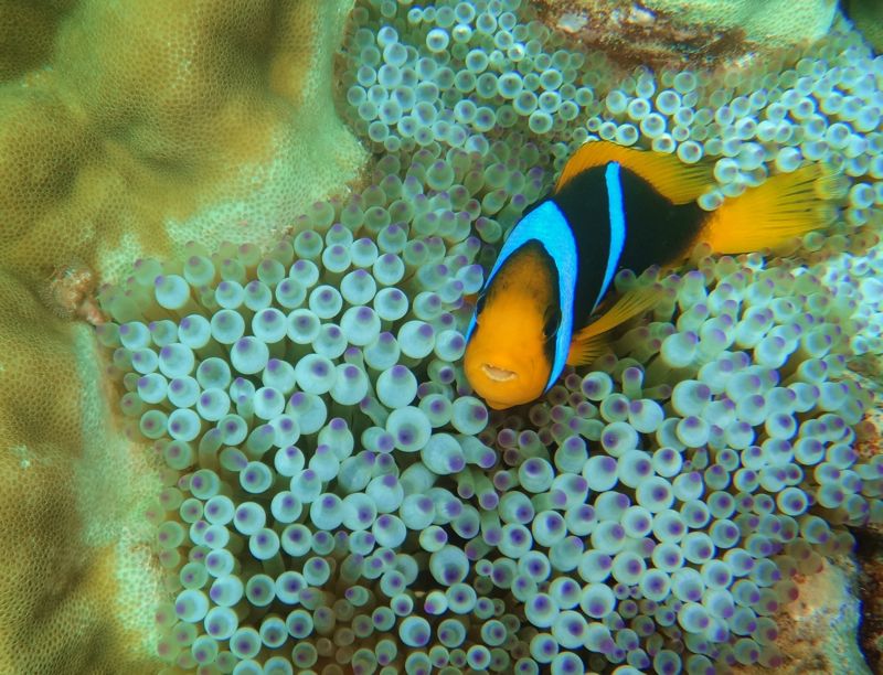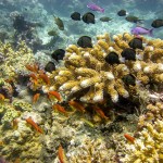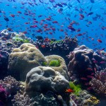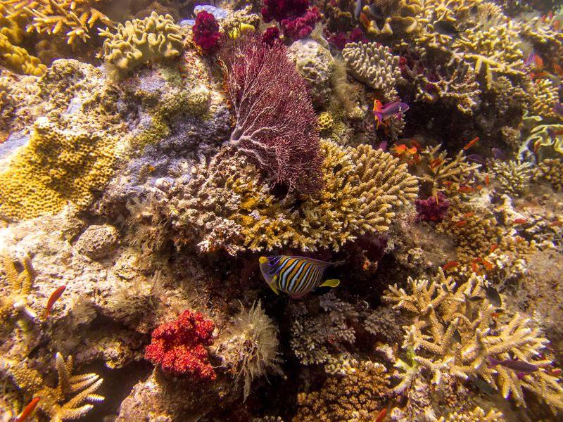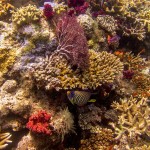 During the next days we also explore the southern reef and the dive sites called ‘Chimneys’ and ‘Mushrooms’ as well as the ‘Four Sisters’. All of them breathtaking beautiful. Timing is important tough: the sites on the northern side should be visited shortly after high tide, while the ones at the southern side are best visited at low tide. The difference between slack water and out- or incoming tide is huge and the currents can get quite strong. If one got the timing wrong, it’s definately worth waiting in the dinghy for the current to change.