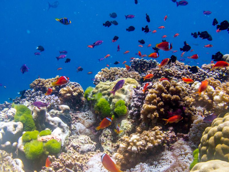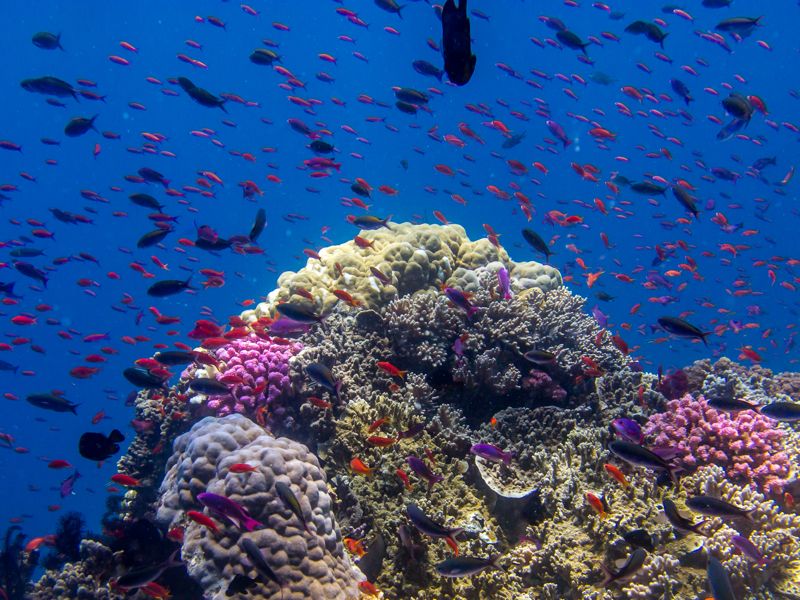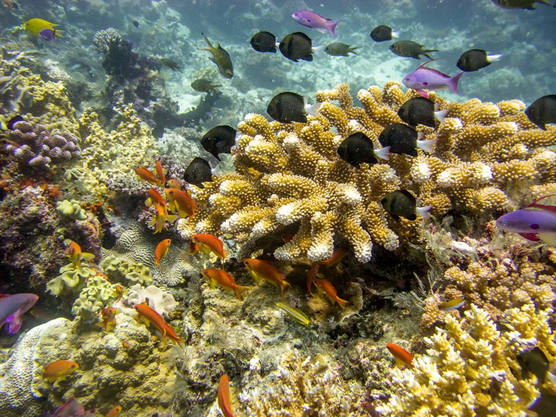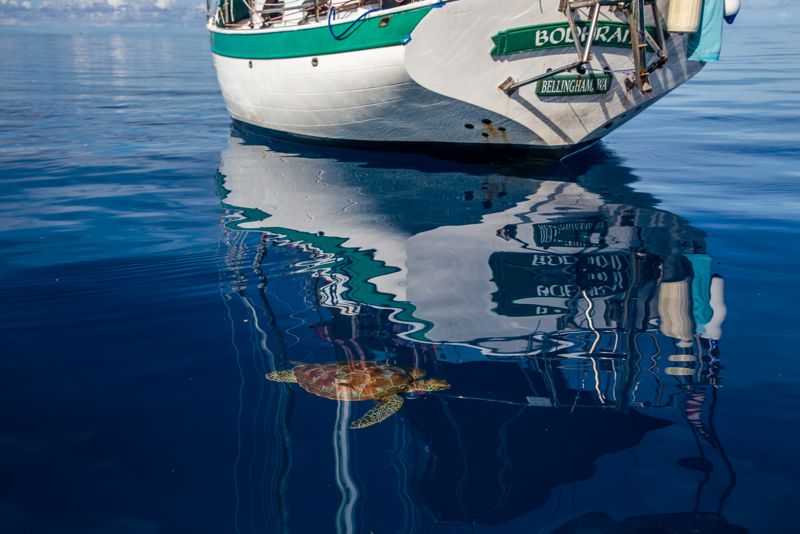After spending the first hours snorkeling around the anchorage, on the second day we sailed towards the outer reef where the ‘proper’ dive spots are to be found. We take Jason’s Yacht and tow two dingies in the back. Not far from the northern entrance to the reef we put the SY Bodhran on a mooring and use the dinghies to explore the reef.