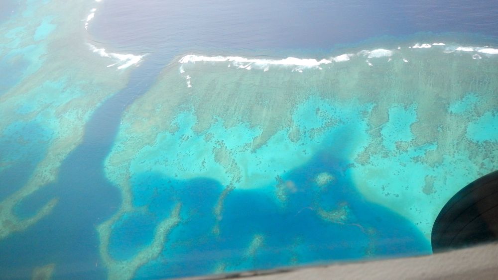 Quite different on the second day: a pair of little white-tip sharks start circling us and instead of being afraid, they come closer and closer while still circling us. I try to scare them off and actually put my fins in their face but they still continue to circle and their movements get more rapid and intense all the time. Needless to say: we don’t like that and although these sharks are usually completely harmless we jump out of the water and into the dinghy. Here we still can see the sharks circling us – sometimes close enough to touch them. Weird.