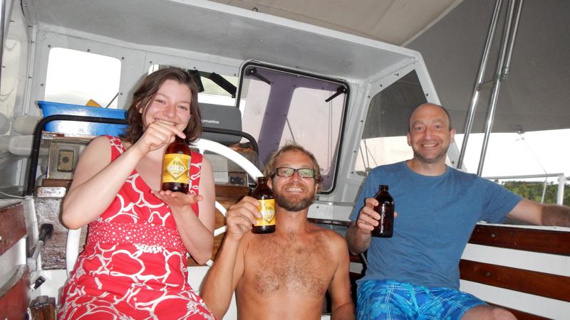 Before leaving from the Costeau Resort, I had to go diving because the night before I accidentally dropped part of our barbequeue. My first attempts of freediving down to 18m were unsuccessful – so I went down again with proper diving gear and actually could find that little thing lying on the ocean floor. Second thing to do: to replace the lower shrouds that got damaged months ago in a storm when sailing towards Tonga. My brother brought the needed replacement parts with him from Europe.