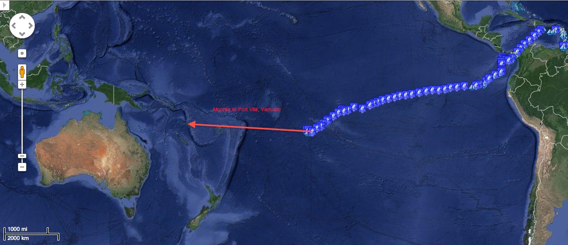 LATITUDE: 16°25.88S, LONGITUDE: 164°04.27W, COURSE: 258T, SPEED: 4.3, WIND: ENE3, TO GO: 583nm