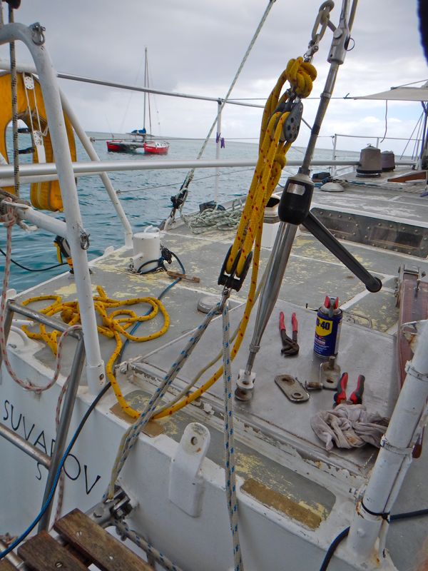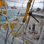 * Die Bordkatze: Der Input ist minimal aber auf kalorienreiche und stark ueberzuckerte Nahrung optimiert. Abgegeben wird diese Energie ganztaegig in Form von Akrobatik und Turnuebungen an Haltegriffen, Riggteilen, Reling sowie auch akustisch. Zusaetzlich scheint Logistik eine ihrer Staerken zu sein. Es werden taeglich Unmengen an (hauptsaechlich kleinen) Gegenstaenden quer durch’s Schiff transportiert. Beispiel heute: als der Wunsch nach einem gute-Nacht-Film ausgesprochen wird, heisst’s zuerst mal ‘klar Schiff’ fuer die Kinder – das ist Vorraussetzung. Zu diesem Zeitpunkt befanden sich in der Achterkabine all unsere Kochbuecher sowie saemtliche Babyklamotten von Viola’s Puppen. Am Vorschiff wurde tagsueber ein ‘Zelt’ aufgebaut, welches mit dem ueblichen Hausstand ausgestattet (Malsachen, Puppensachen, Kuscheldecken und Polster…) abgebaut werden musste. Im Cockpit fanden sich ein Stapel Pixie-Buecher und eine kleine lila Blechdose sowie weitere Schreibutensilien, Im Salon U
