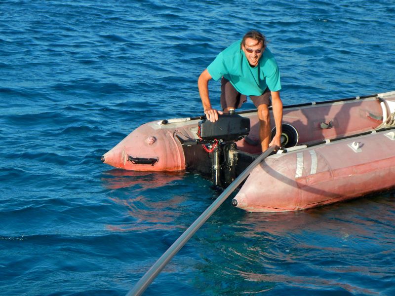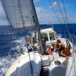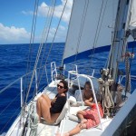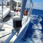 * Der Captain: Startet den Motor am Morgen mit einer Tasse Espresso und fuegt dem System massiv Kalorien in Form einer Doppelportion Haferbrei zu. Danach wird sehr sparsam mit der Energie umgegangen. D.h. um die Batterien zu schonen, bleibt der Skipper im Schatten und bewegt vorzugsweise nur die Augen beim Buecherlesen.. Wenn’s dann doch mal zu einem Manoever kommt, werden Unmengen von Energie freigesetzt, die Segel gehen rein und raus, dass die Winschen nur so aechzen, der Spiebaum wirbelt durch die Luft und Leinen werden hin und hergezurrt bis dann endlich wieder alles passt und sitzt. Dann ist der Captain ueberhitzt und muss erst mal mit ein paar Eimern Meerwasser auf Normaltemperatur gebracht werden bevor er wieder in den standby-Modus uebergeht. Da der naechtliche Ladezyklus mit nur vier Stunden sehr kurz ist, wird manchmal tagsueber ein weiterer Ladevorgang noetig.