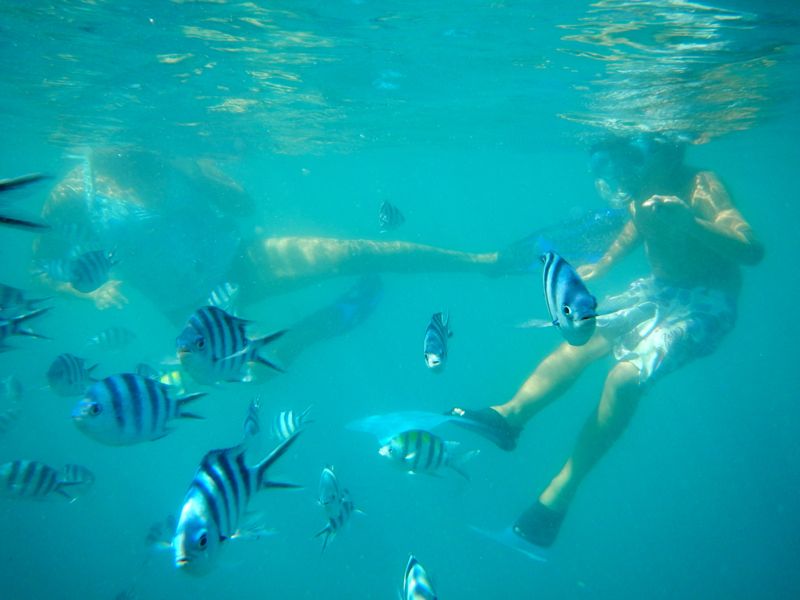 Viele Fische und Bruno und Silke (SY Tamora) im HintergrundEcht. Viele. Fische.Clownfische - die Kinder lieben sie.Mehr Fischlein