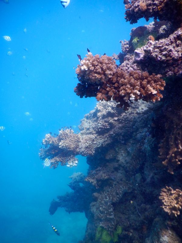 The Suvarov finally sailing again.What a nice anchorage we have...Crystal clear water and lots of healthy coralThe snorkeling at the anchorage is already quite amazing.