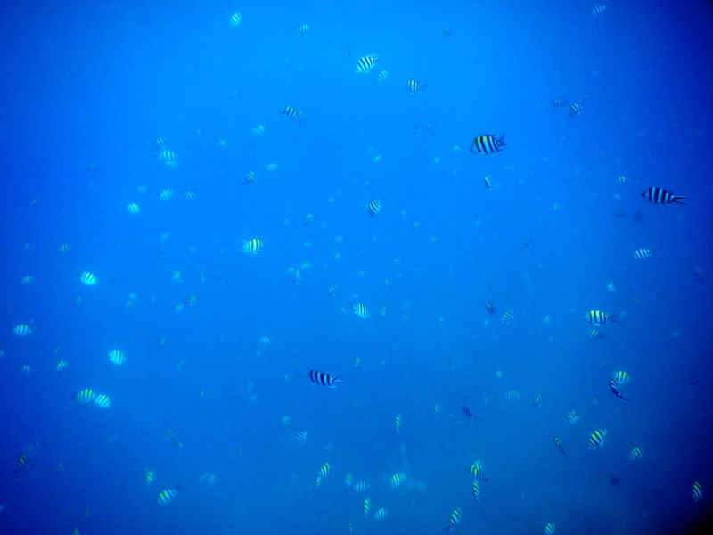 More little fishes - still at 'Kansas'Flashes of color and form. Tropical coral fish.At the drop-off.Blue in blue.