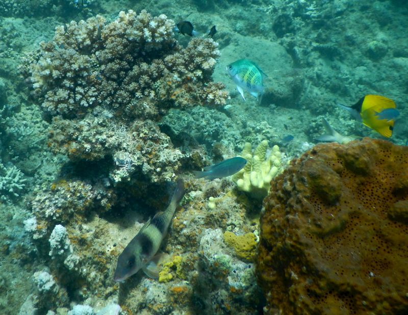 Nebenbei gibt’s natuerlich jede Menge Anemonen-Fische, Moerdermuscheln, Zackenbarsche, Suesslippen, Seesterne, Quallen, etc…. Aber ich lass mal einfach die Bilder sprechen….