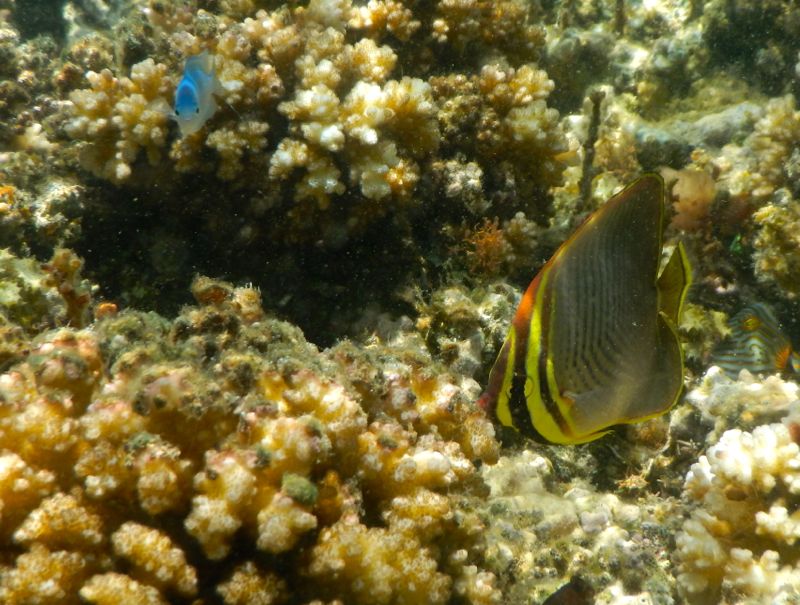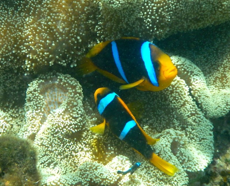 Our favouriteAnd the clownfish - the 'sunset' pic of snorkelingLittle black opes in a white coralAnd blue ones in a yellow soft coral