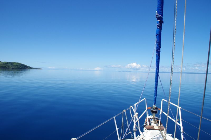 Wir hatten unsere Reise gut geplant und sind mit dem letzten Nordost-Wind die 25 Meilen gesegelt, um dann vor der Insel die naechsten Tage in voelliger Flaute und entsprechend ruhig zu liegen. ‘Wir’ das sind die SY Suvarov, die SY Odin und die SY Bodhran. Es gibt eine Mooring, welche sich Jason von der Bodhran schnappt und wir ankern auf 23m Tiefe mit 75m Kette.