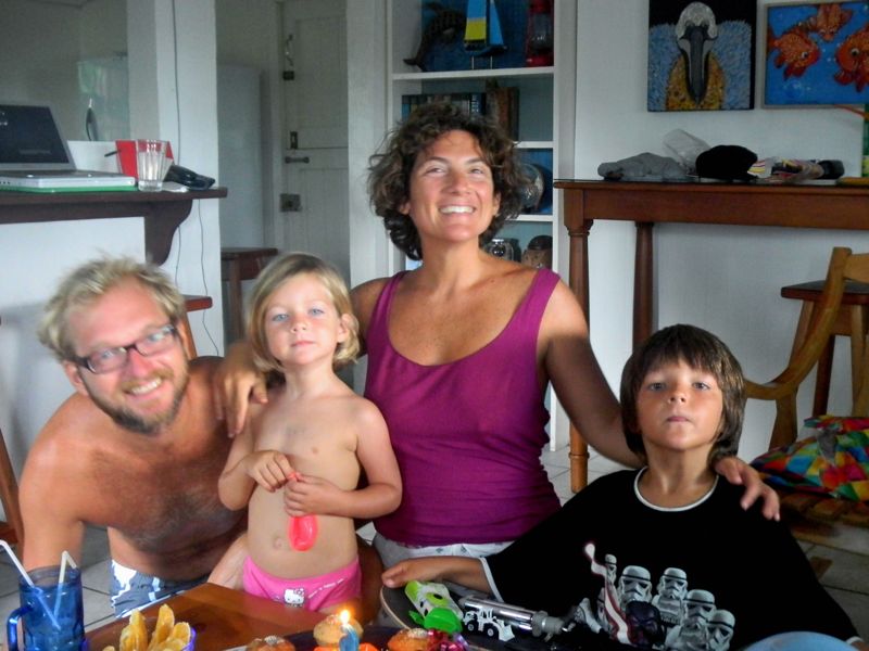Gui and the kids are up early on the 3.3.2012, decorating table and cake and drawing a nice birthday card. The skipper is 38 and gets a massage under palm trees for his back. Bruno tries the first piece of cake and – CRACK – what was that ?!? Bruno’s first milk tooth just came loose. Bruno is extremely happy as now he is ‘older’. Loosing the milk teeth was one thing he was waiting for with great excitement.