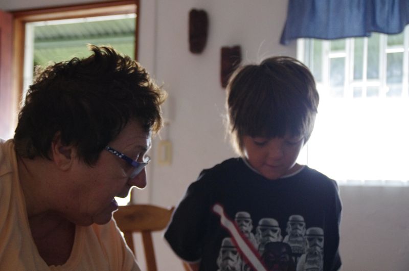 But first Bruno wanted to do ‘school’ and as he is more and more interested in small type, Gui got out a magic box containing colored, beautiful letters. With a nice set to touch and move around it’s double the fun and fascination as you turn d, p, q and b around. Transforming a i into a j, a d into a c or whatever. Of course Viola was joining in writing and painting. Both had a lot of fun with it and they immediately recognize and remember because they know that only with the small letters they can really read books. And that’s what both want.