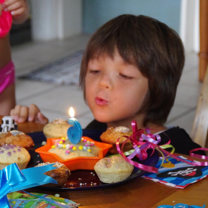 Bruno’s birthday actually is when the northern summer starts, on the 21st of June. But since right now we’re with his grandmother, we decided to celebrate a little earlier. Yesterday we started preparations and Bruno, Viola and me made muffins, and sandwiches for today in the morning. As soon as the kids fell asleep, Gui decorated the table and hid the presents – with hidden hints, where to find the next one.