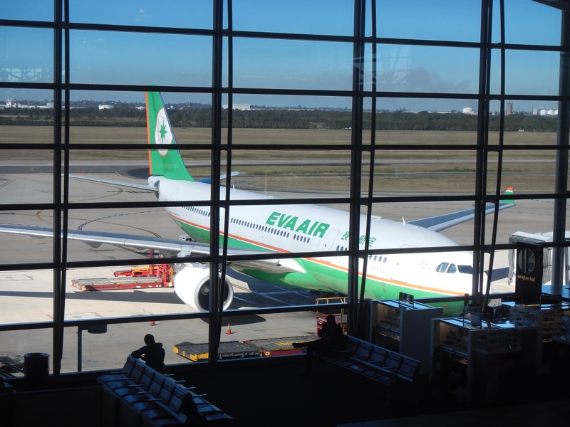 Now we’re left with four still quite big but legal pieces of hand luggage and wait for the plane…. Phew !! One step further… Although the whole last days still didn’t really sink in and everyone is running around with their feet in the air. It’s gonna take a few days for us to really comprehend what’s happening with us. But… all well. We’re on the way !! In ninety minutes we’ll hopefully be in the air above Brisbane and on our way to Bangkok.