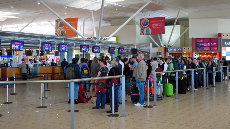 Yeh. The LosLocos like it internationalA bit scary to arrive with that at the check-in counter.Queuing. Something new for us.Not our plane. But we like the name. (for Ma)