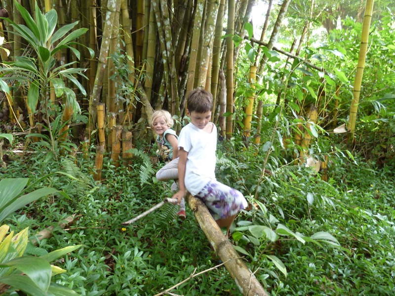 That of course means that a big part of the hike downwards is quite slippery and gets very tricky as much of the ground is composed of red clay. But we reach the Belvedere just before sunset and are very lucky to get a ride down to the village. And as we already know the polynesian way, we’re not surprised as one of the guys who is riding with us in the back of the pickup truck offers to get us to the marina. He just has to get back home and get his own car. The local people are extremely friendly and helpful and are not shy to drive two dirty, sweaty aliens around the island.