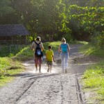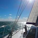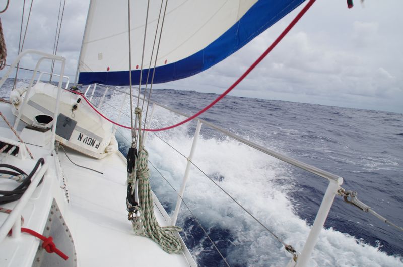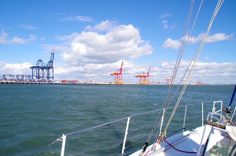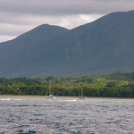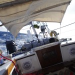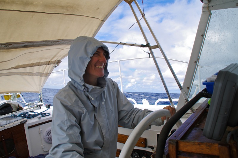 Kilian is extremely happy in the water, although it is just about 20°. And for Moana the best is when I row her around in our little blue dinghy and she can tell me where to go. To spend another night at anchor definatly was a good choice. But later that day when the first clouds appear, we move to the marina because we’ll meet friends from a time long ago. The too were sailing through the Pacific. Back then just the two of them in a small 26″ boat. Now they have two golden haired children and are searching for a larger boat to move aboard in about a year’s time. We spend some wonderful hours together, laugh about the past and dream about the future.