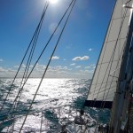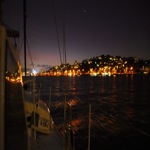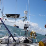The next day really does get hot and after breakfast we immediately head to the beach again. After all these weeks with cold wind and rain we enjoy every minute of sun – and especially going swimming ! As we row back to our boat in the afternoon we count no less than 45 boats. After lunch, we decide to leave today as tomorrow we’ll have the wind against us.